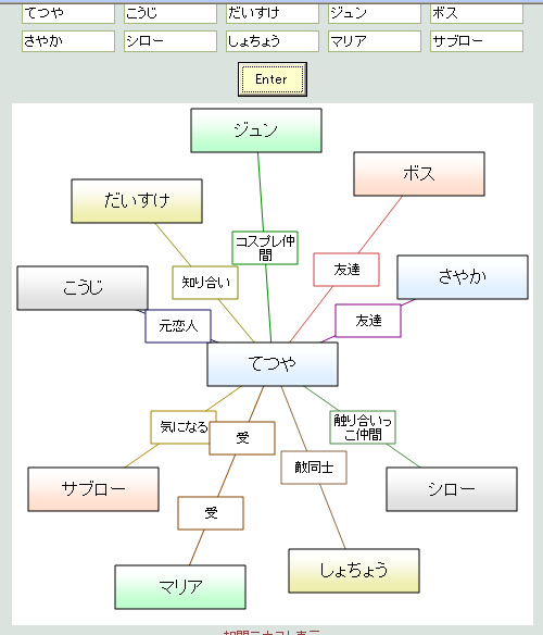 で、ちょっと前にやった相関図ジェネレーターの結果でも張ろうと思います。
